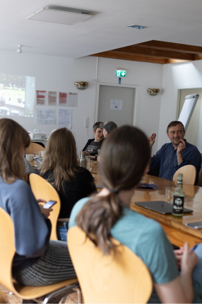 Im Workshop mit Kurator und Wissenschaftler Ronald Kolb standen am Mittwoch Prozesse der Wissensproduktion im Ausstellungskontext im Mittelpunkt. Anhand kuratorischer Beispiele wurden partizipative und ökologische Ansätze jenseits klassischer Museumspraktiken diskutiert sowie Fragen nach Objektivität, Intention und Verantwortung in der Ausstellungsarbeit beleuchtet.