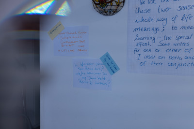 Am Nachmittag stand als Beispiel das Projekt Art as Egological Practice im M1 in Hohenlockstedt im Zentrum, das Ronald zwischen 2025 und 2026 kuratiert. Gemeinsam mit Künstler*innen und lokalen Akteur*innen – etwa Nachbar*innen – hat Ronald verschiedene „Assemblies“ für jede Jahreszeit veranstaltet. Diese dienen als Räume, in denen die unterschiedlichen Akteur*innen anhand ökologischer Praktiken Wissen gemeinsam verhandeln.